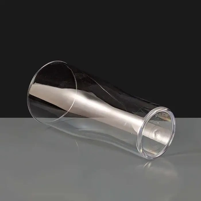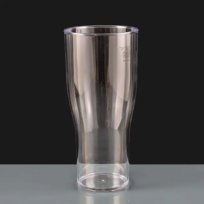 Shatterproof reusable beer glass, made from food grade plastic. Tested over 1000 dishwasher cycles with no visual detraction.