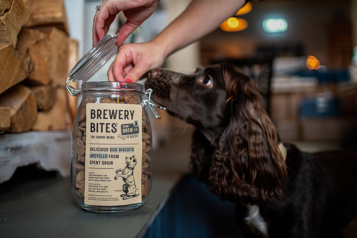 Restock your dog treat jar with deliciously sustainable Brewery Bites dog biscuits.